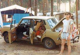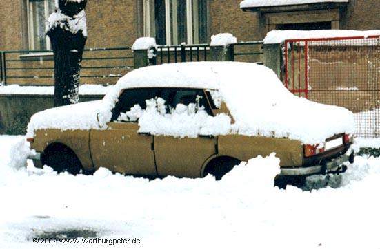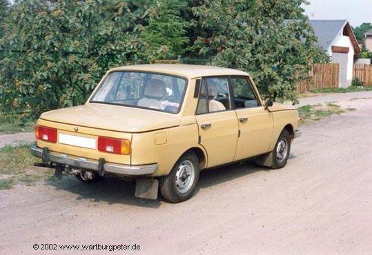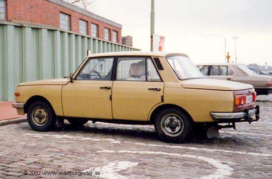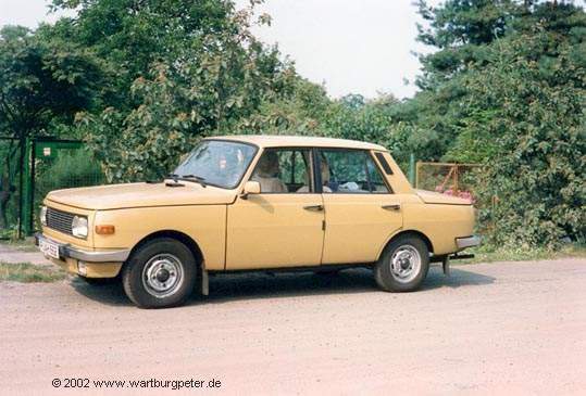 Dies war mein erster Wartburg (Bj. 83), den ich 1991 von meinem Freund Glenn übernahm. Das absolut besondere an diesem Auto war der tip-top Pflegezustand, bis in die kleinste Ritze! Ansonsten vollkommener Werksstandard. Das "neue" Heckmittelteil bekam er irgendwann einmal nach einem kleinen Auffahrunfall noch vor meiner Zeit. Leider, leider mußte dieser Wartburg schon 1993 verschrottet werden, da nach einem (unverschuldeten) Unfall die Karosserie zu stark beschädigt war. |